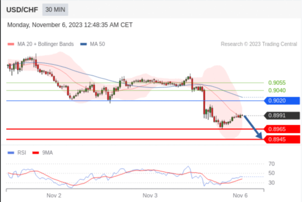 在 0.9020 之下,看跌,目标价位为 0.8965 ,然后为 0.8945 。