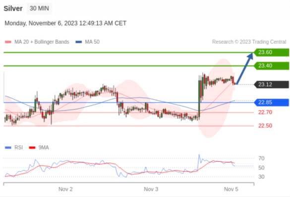 在 22.85 之上,看涨,目标价位为 23.40 ,然后为 23.60 。