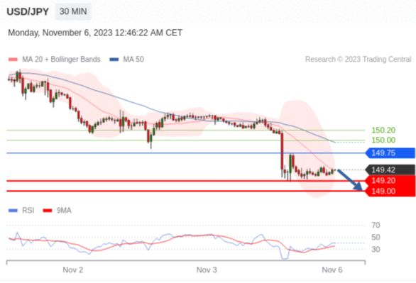 在 149.75 之下,看跌,目标价位为 149.20 ,然后为 149.00 。