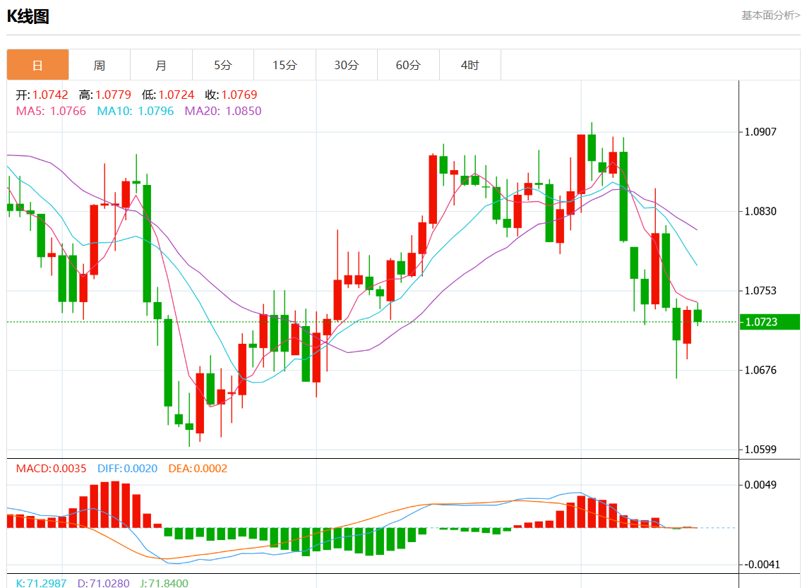 周二欧市盘中,欧元/美元最新报1.0723,日图跌0.10%。
