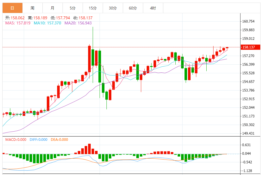 支撑位:157.85 157.97 158.04