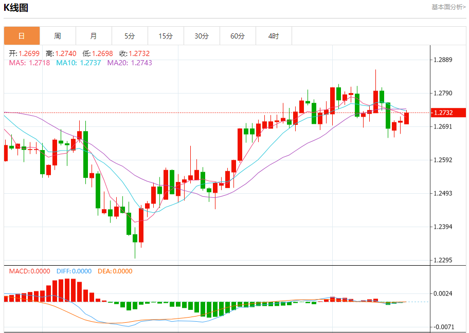 汇价高见1.2740,低见1.2698。上一交易日,汇价收于1.2707。