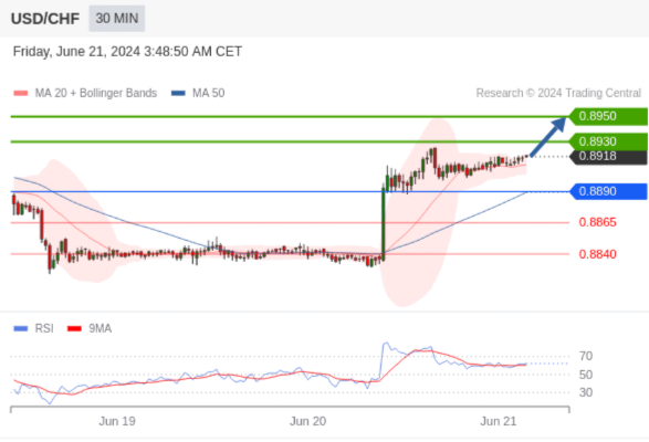 在 0.8890 之上,看涨,目标价位为 0.8930 ,然后为 0.8950 。