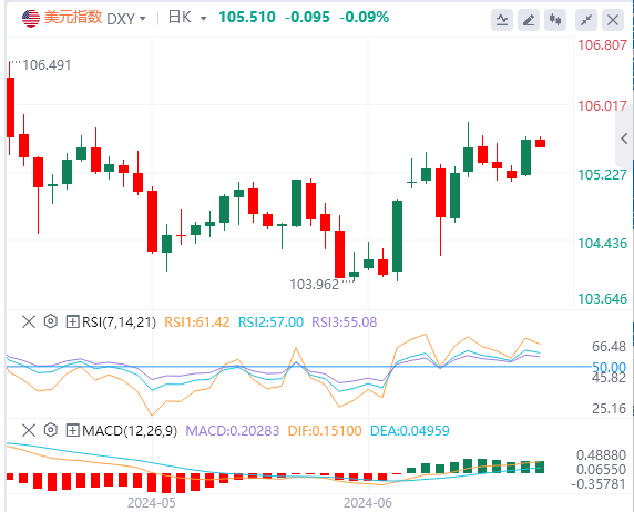 假如美元指数保持在105.50上方,那么中期内可能升向106-106.30-106.50。