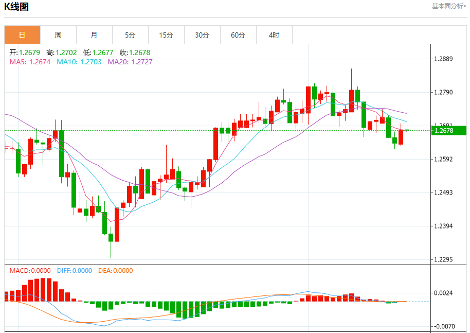 汇价高见1.2702,低见1.2679。上一交易日,汇价收于1.2679。