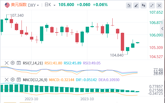 美元指数周二回调,并因美国国债收益率逆转和华尔街股市转正而失去动力。10年期国债收益率从4.65%下降至4.54%,2年期国债收益率从4.95%下降至4.89%。美元指数连续第二天上涨,但在触及两日高点105.77后最终收于105.50附近。
