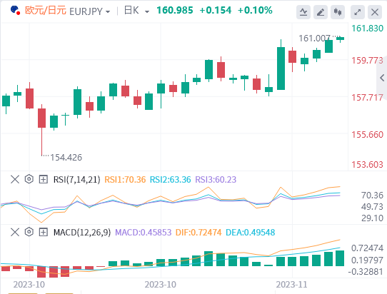 【XM交易平台】欧元/日元今日行情走势交易策略(2023年11月7日)