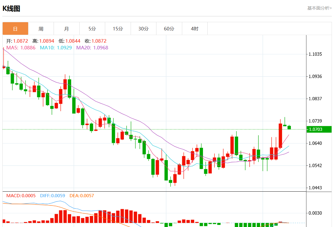 周二欧市盘中,欧元/美元最新报1.0700,日图跌0.16%.