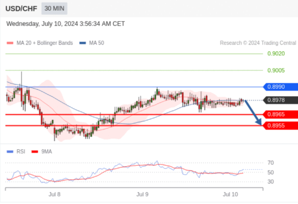 在 0.8990 之下,看跌,目标价位为 0.8965 ,然后为 0.8955 。