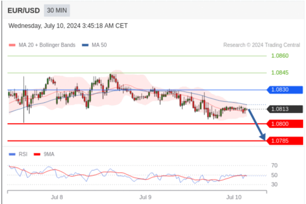 在 1.0830 之下,看跌,目标价位为 1.0800 ,然后为 1.0785 。