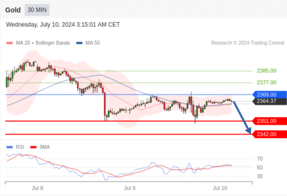 在 2369.00 之下,看跌,目标价位为 2351.00 ,然后为 2342.00 。