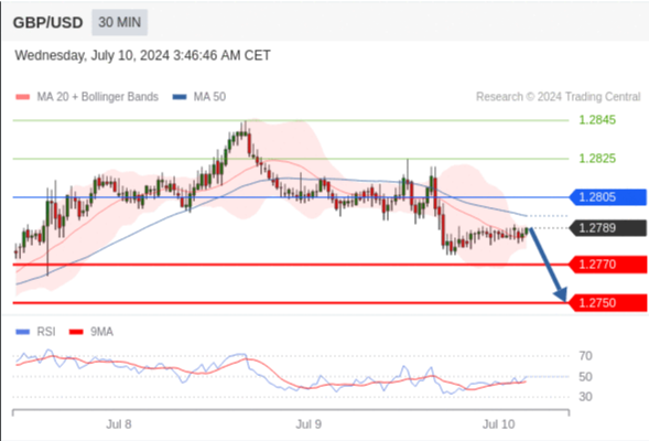 在 1.2805 之下,看跌,目标价位为 1.2770 ,然后为 1.2750 。