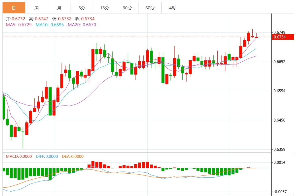 技术分析:澳元维持在0.6750附近
