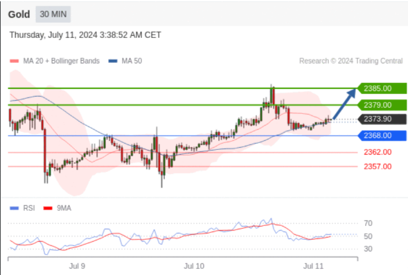 在 2368.00 之上,看涨,目标价位为 2379.00 ,然后为 2385.00 。
