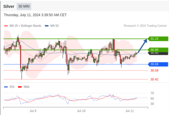在 30.69 之上,看涨,目标价位为 30.95 ,然后为 31.15 。