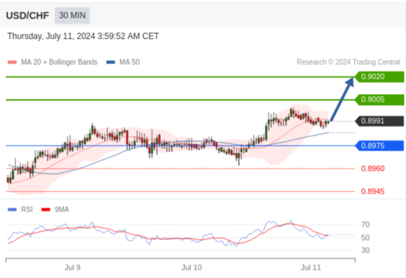 在 0.8975 之上,看涨,目标价位为 0.9005 ,然后为 0.9020 。