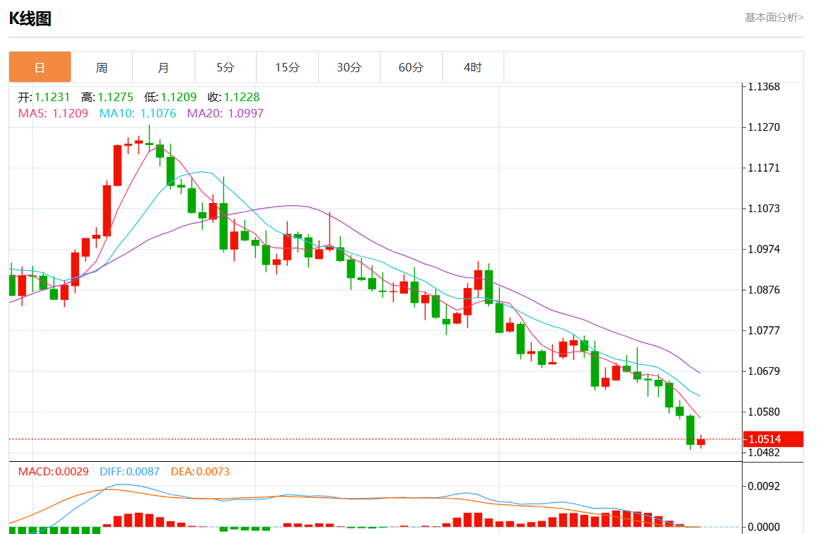 周四欧市盘中,欧元/美元最新报1.0519,日图涨0.16%.