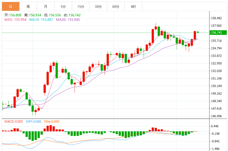 周三(12月10日),美元/日元下跌156.750,暂报156.742,跌幅0.09%。