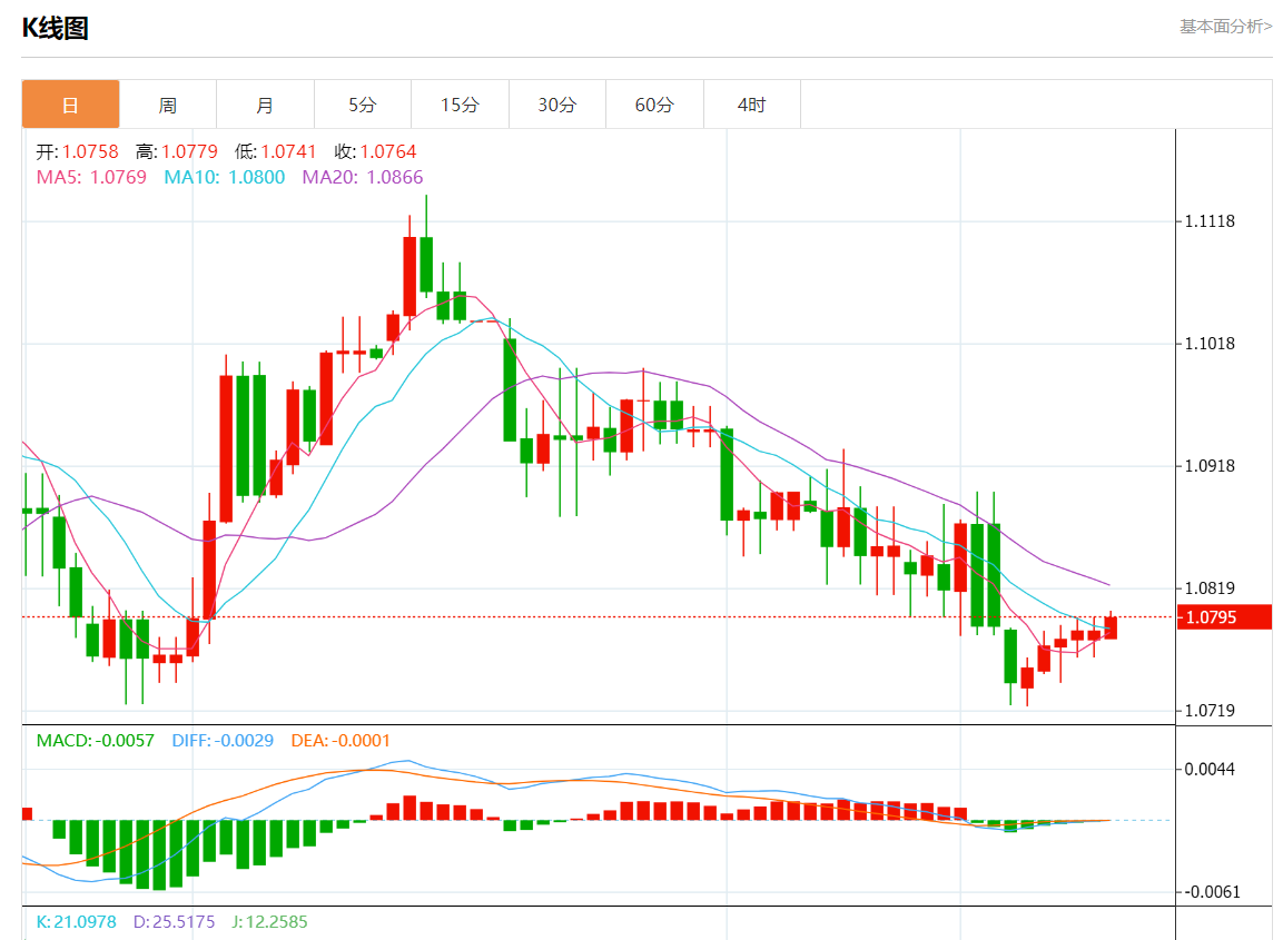 周一欧市盘中,欧元/美元最新报1.0794,日图涨0.09%.